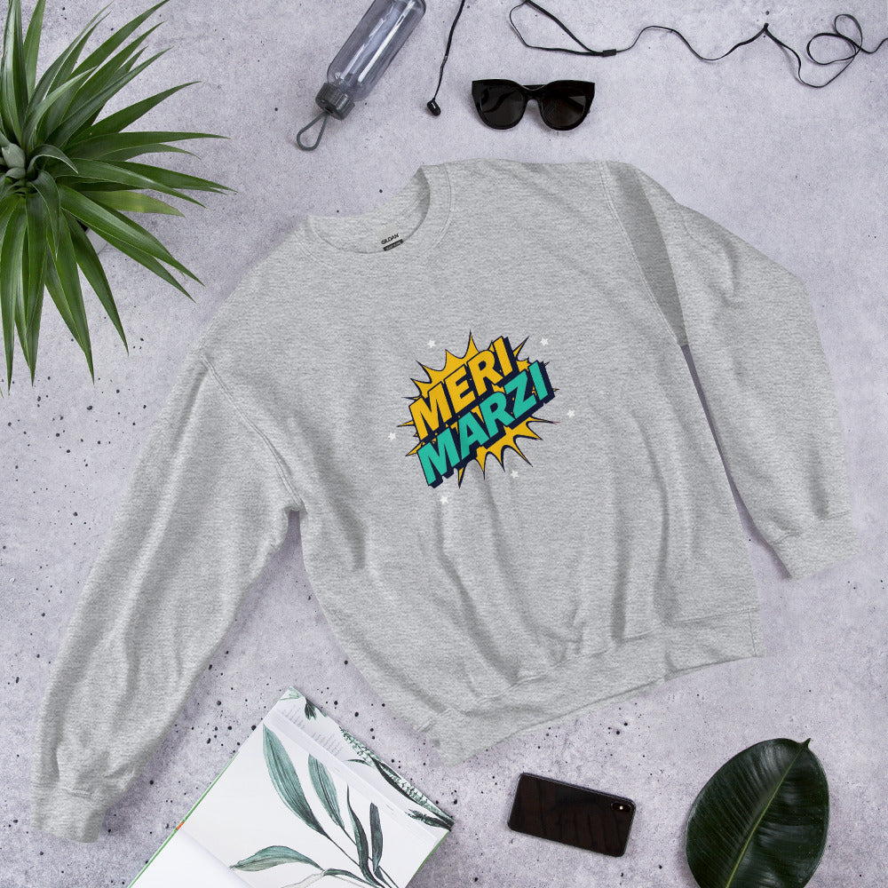 Shop the Meri Marzi Sweatshirt – a bold “My Choice” desi statement crewneck. Soft, stylish and perfect for everyday wear or gifting.